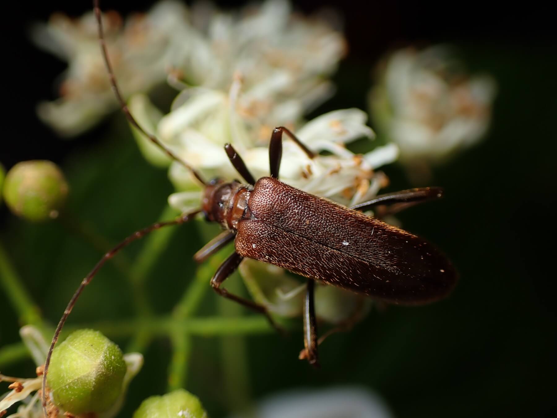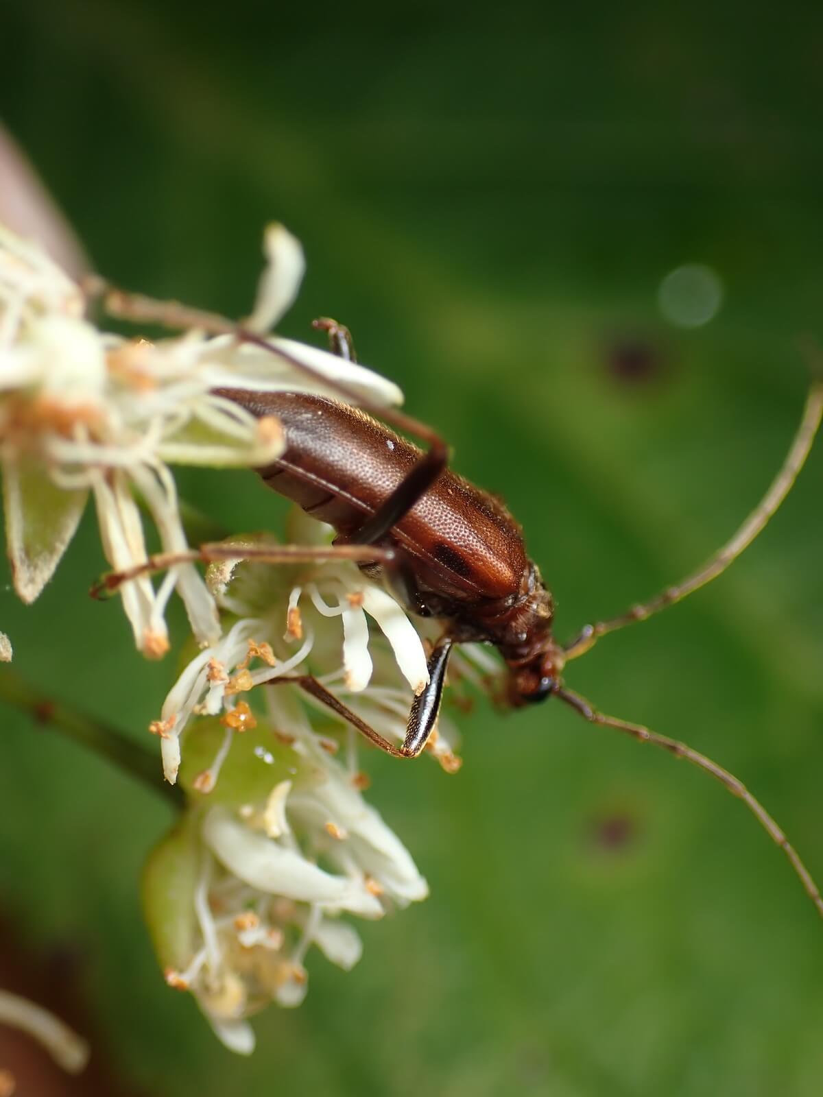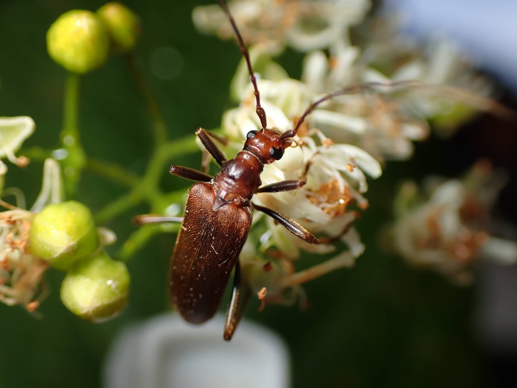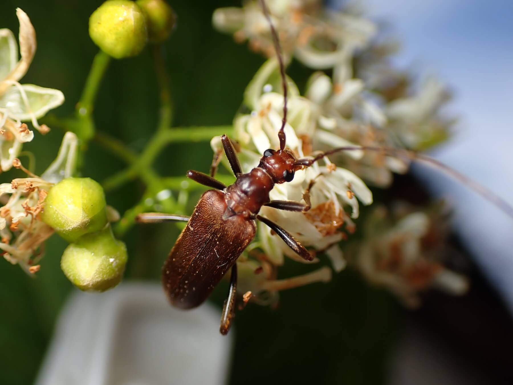 チャイロヒメコブハナカミキリは、本州でも限られた場所にのみ生息する珍しいカミキリムシ。