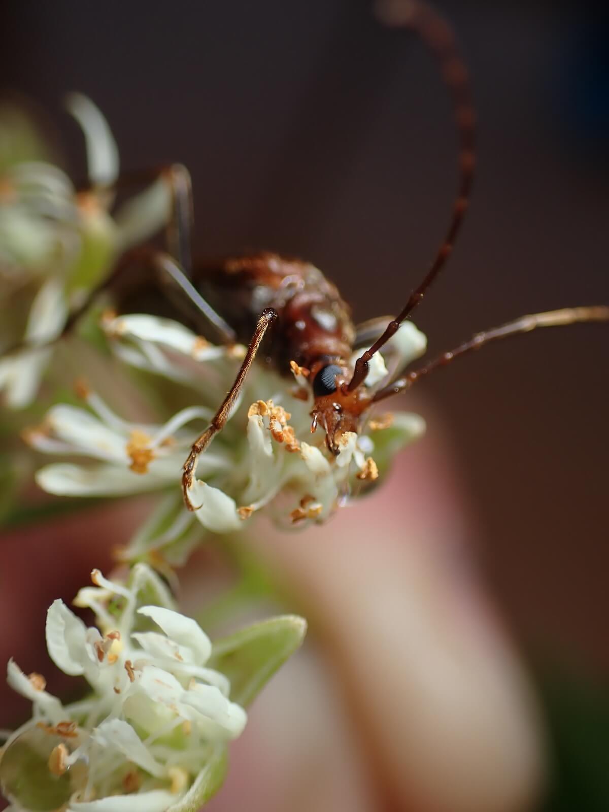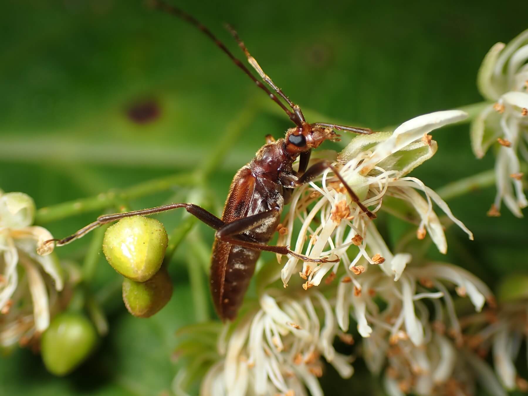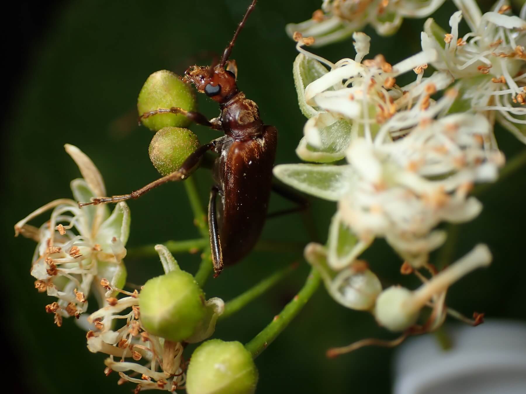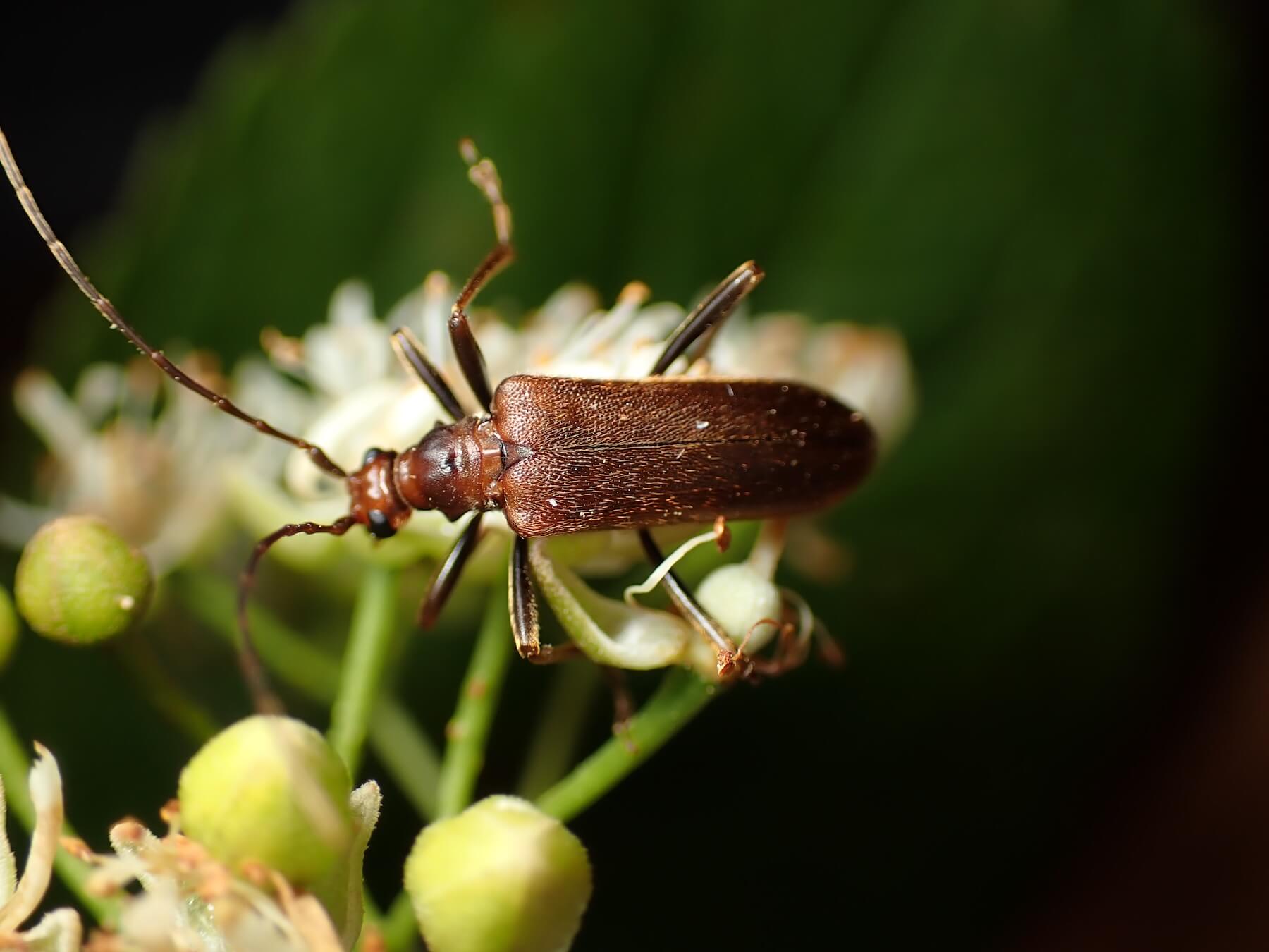 チャイロヒメコブハナカミキリは、本州でも限られた場所にのみ生息する珍しいカミキリムシ。