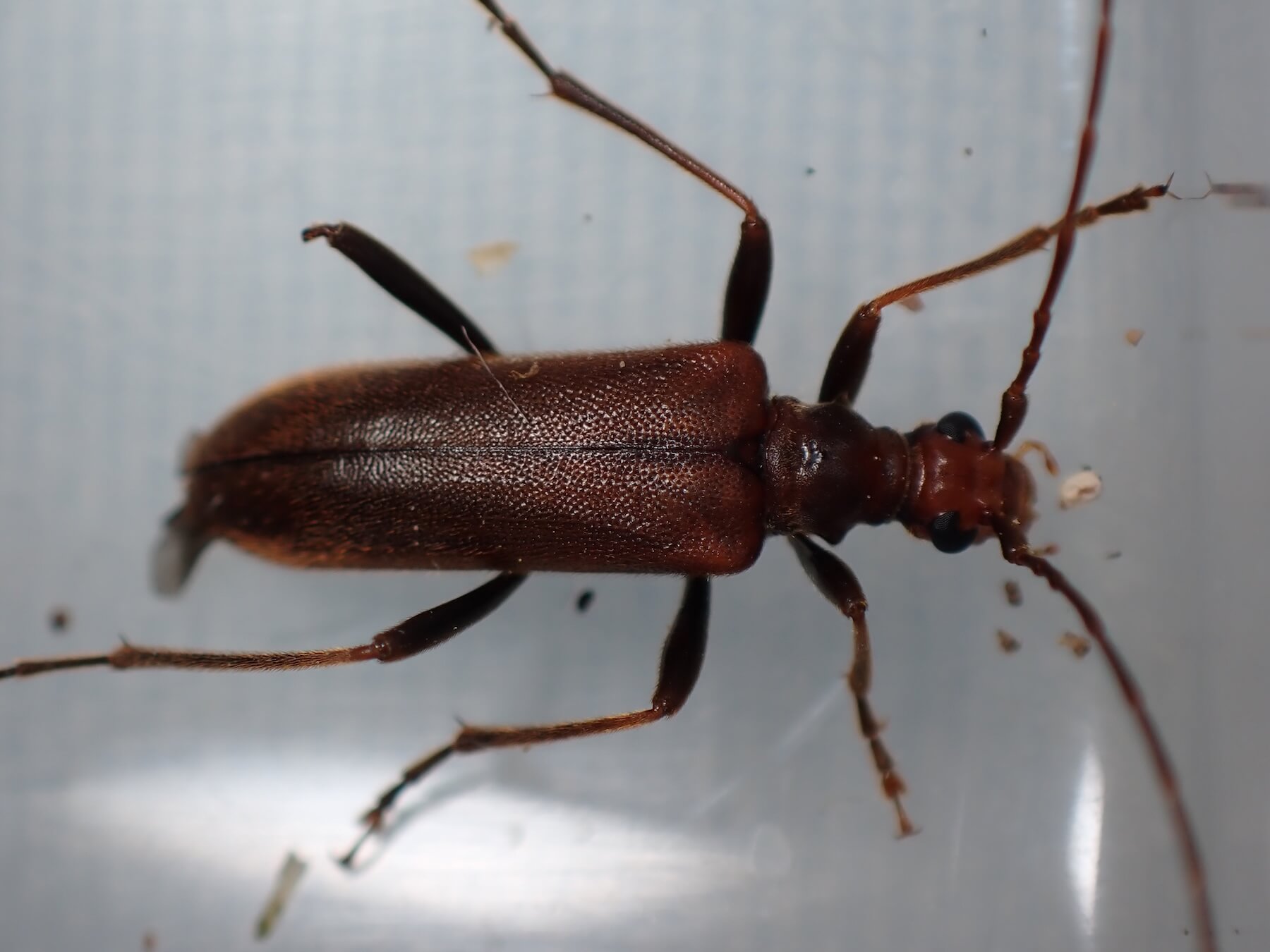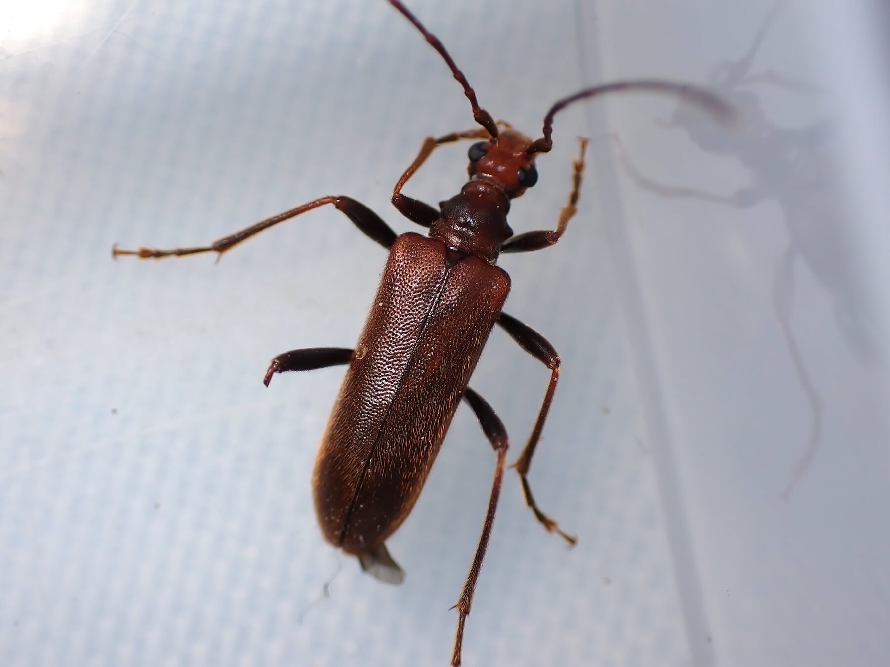 | 特徴、生態 | 希少なカミキリムシ。山梨では数が比較的多いが、愛知ではほとんど見られない。 |