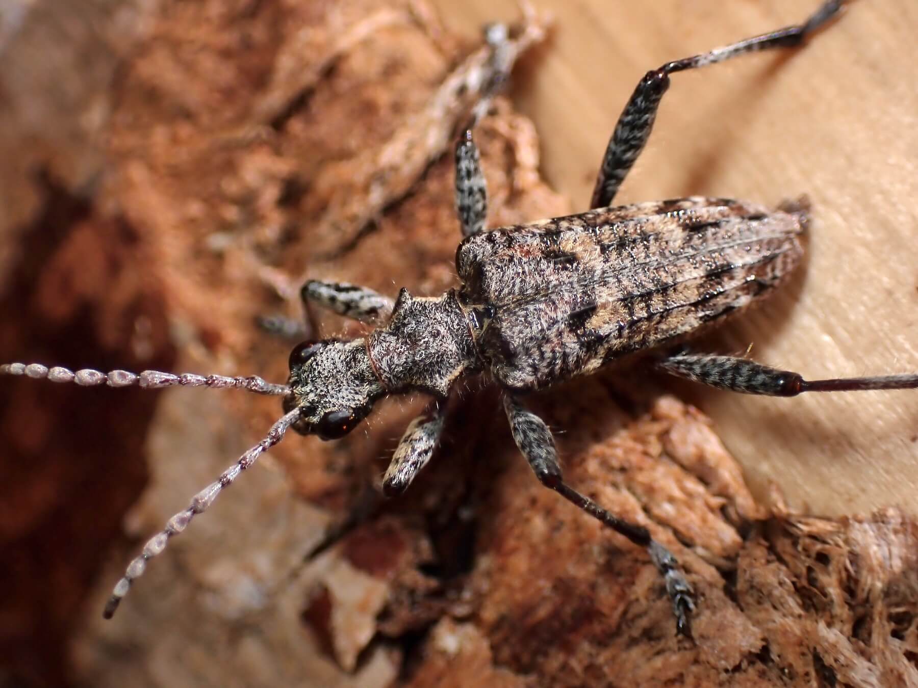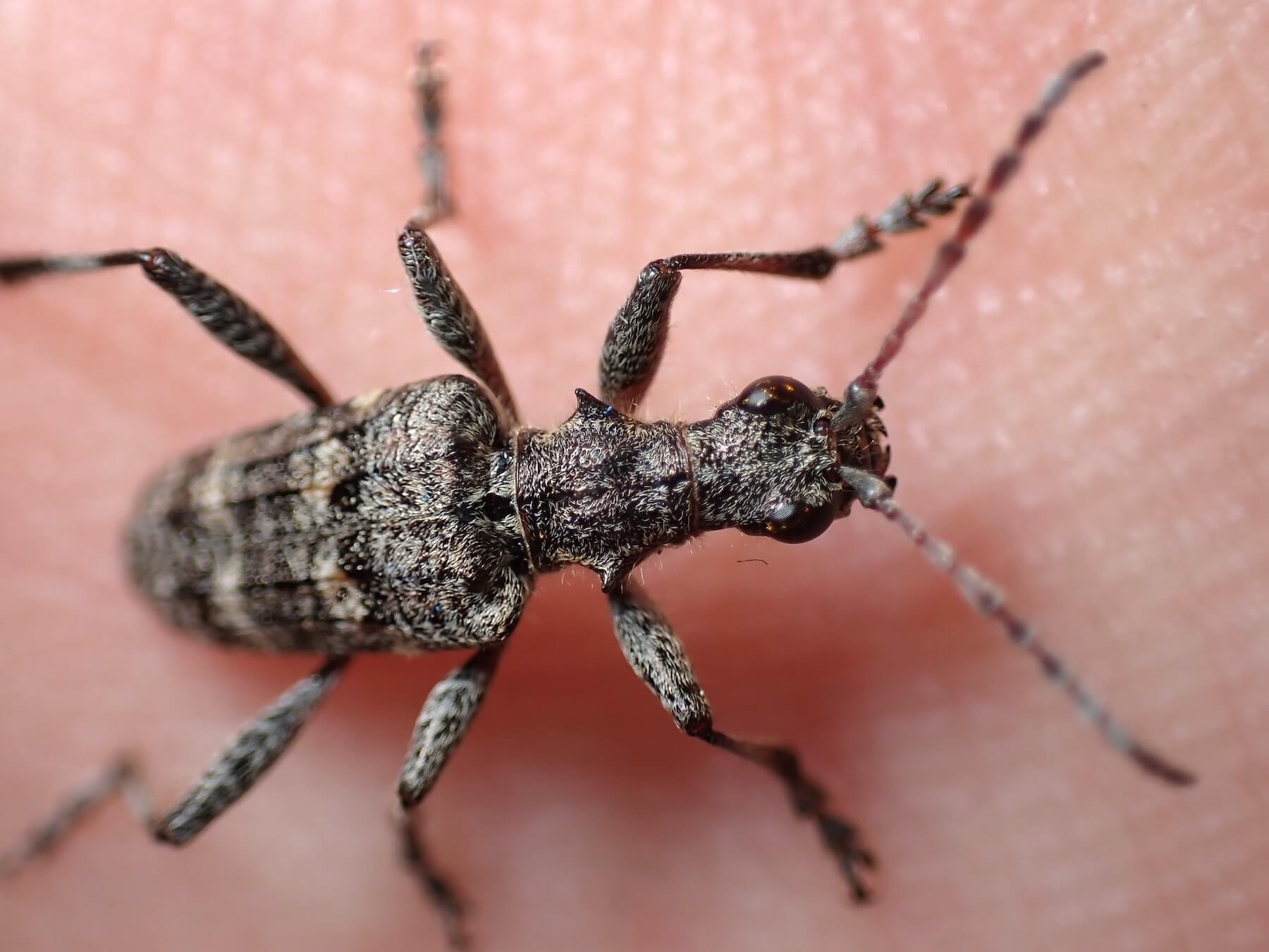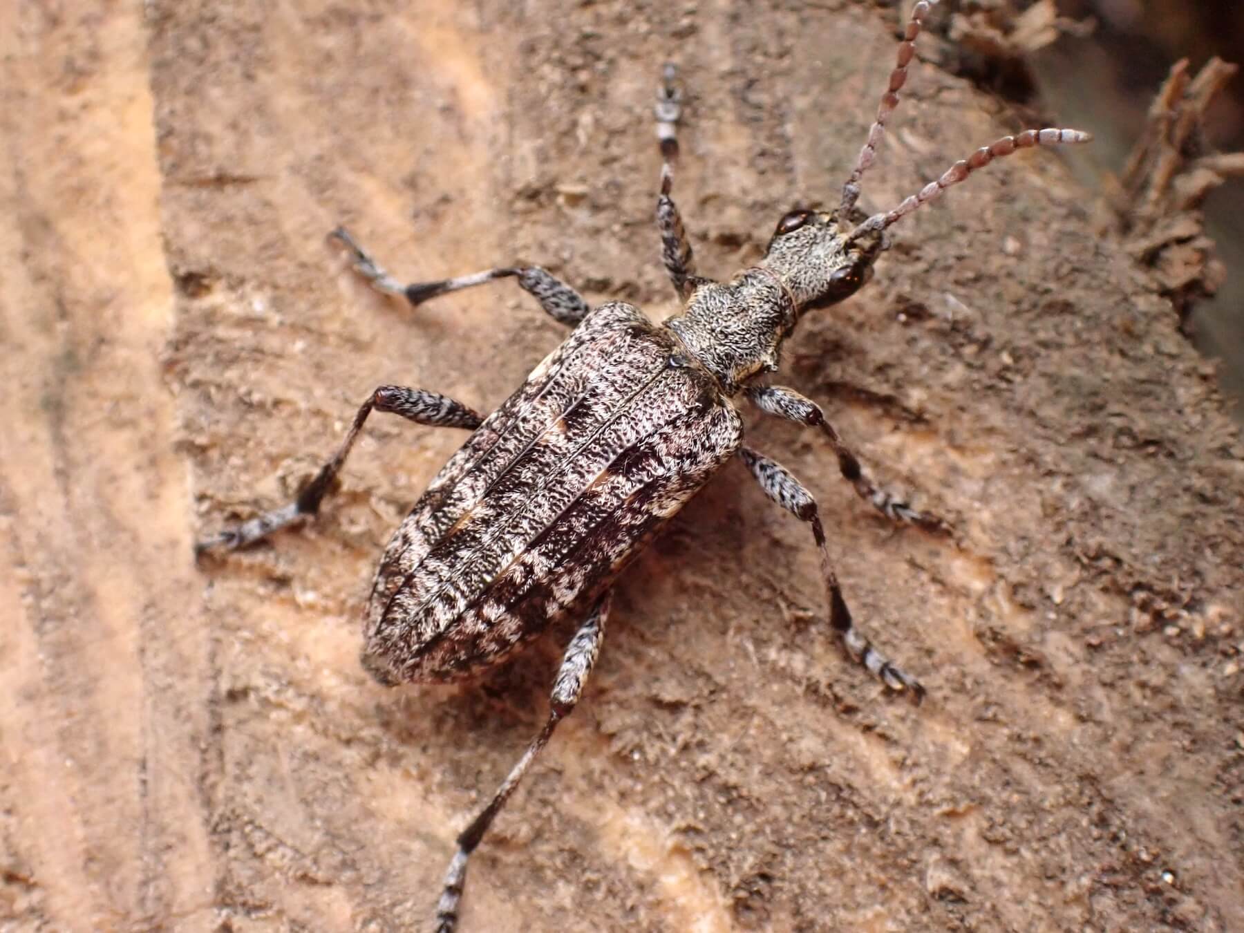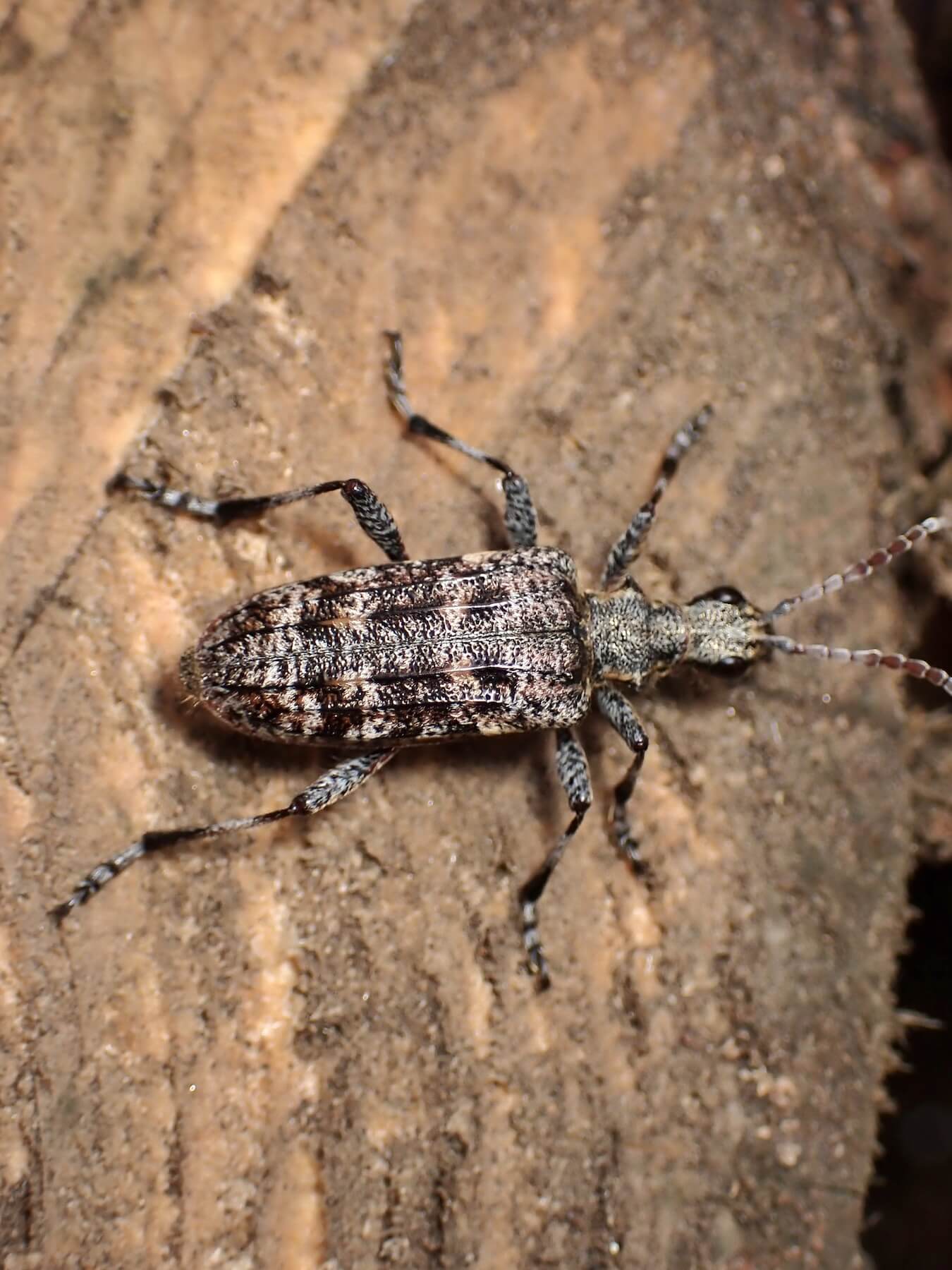 この柄でハナカミキリ亜科とは珍しい。まだら模様はどうしてもフトカミキリ亜科を連想してしまう。